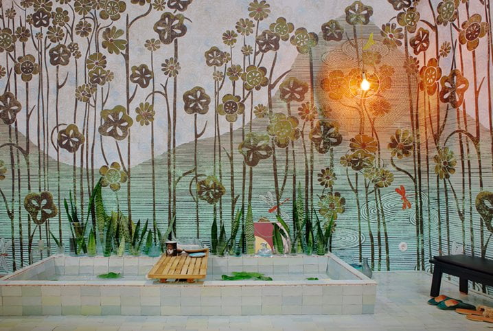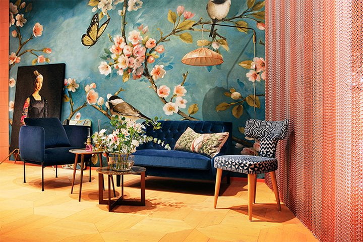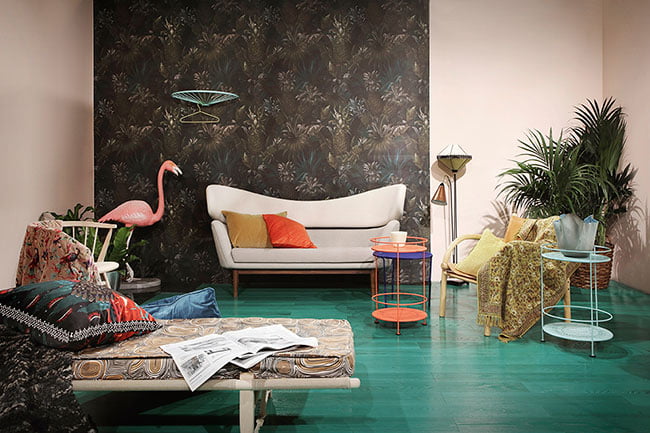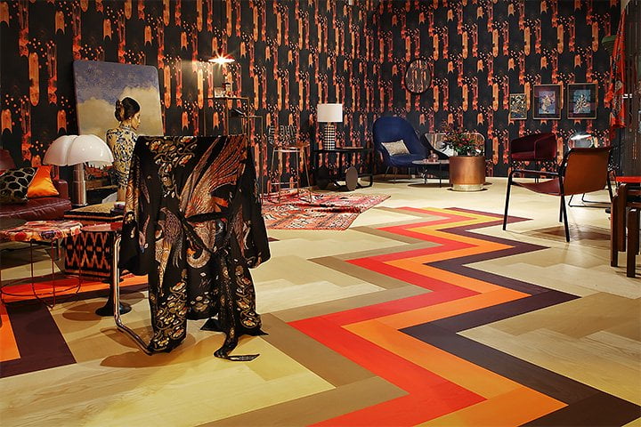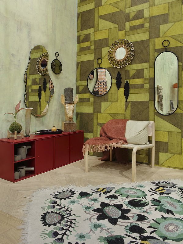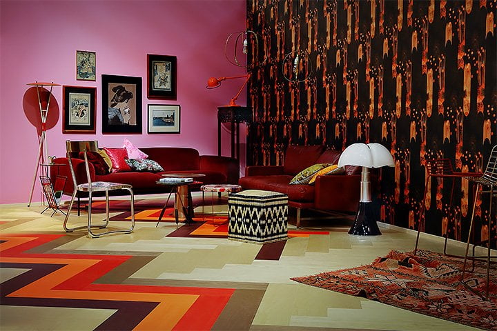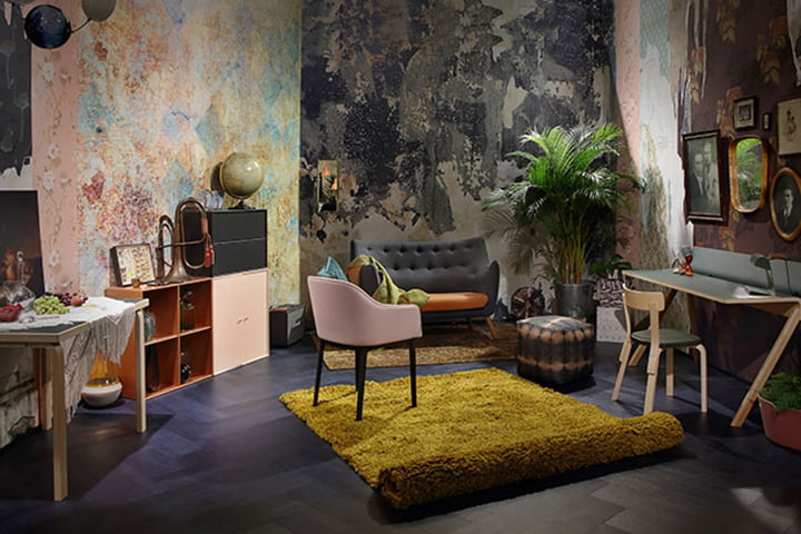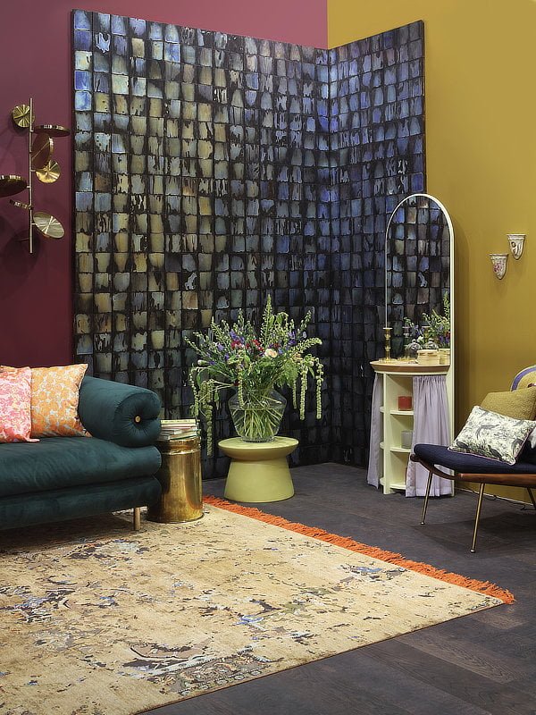 Syksyn sisustustrendit: Kaakelia olohuoneeseen ja väriä lattiaan.
